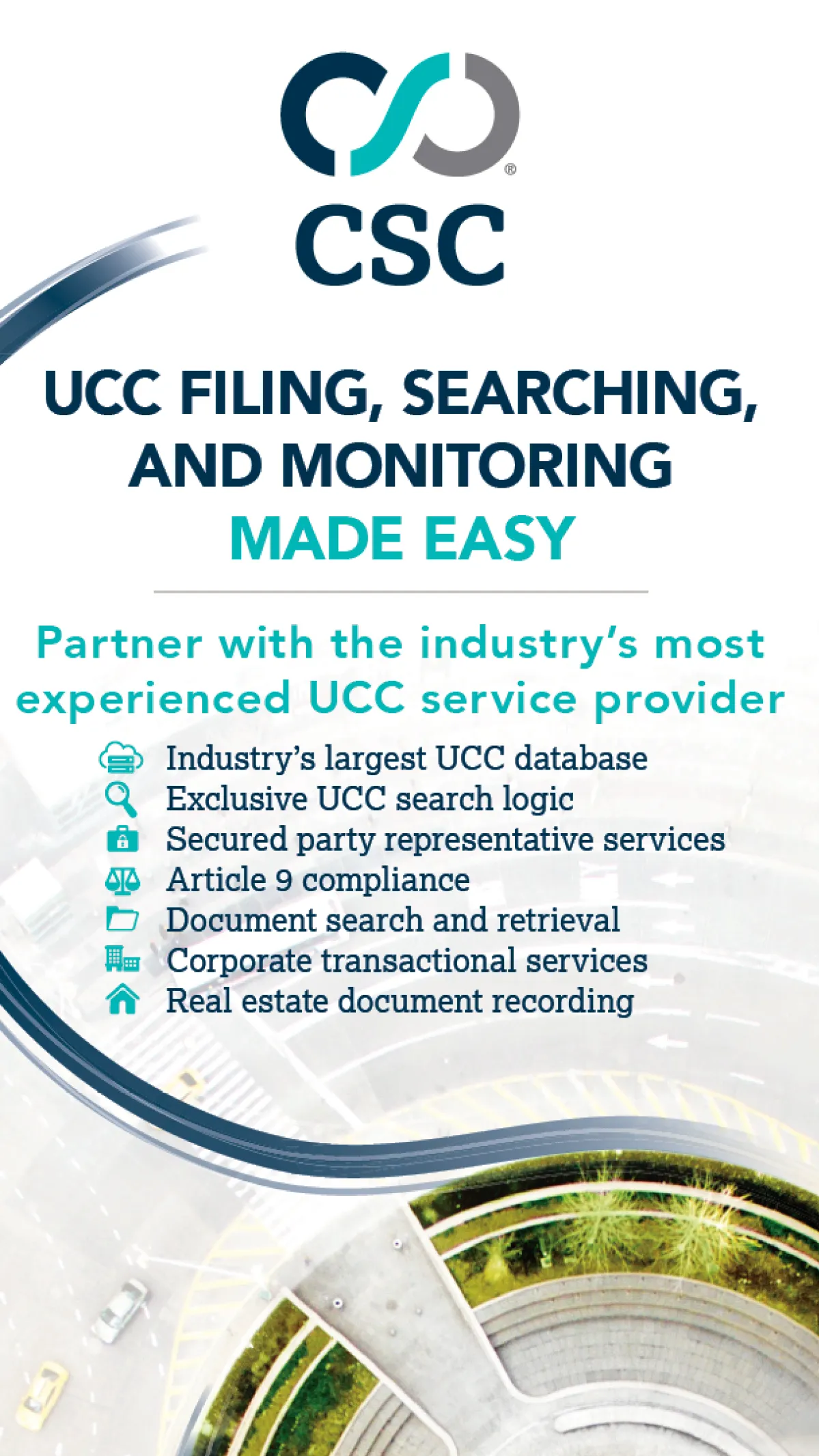 CSC® is the leading provider of Uniform Commercial Code UCC searches, UCC filings, and online UCC portfolio management services for commercial banks of all sizes, factoring/accounts receivable organizations, capital finance companies, large leasing enterprises, and legal firms specializing in secured transactions.