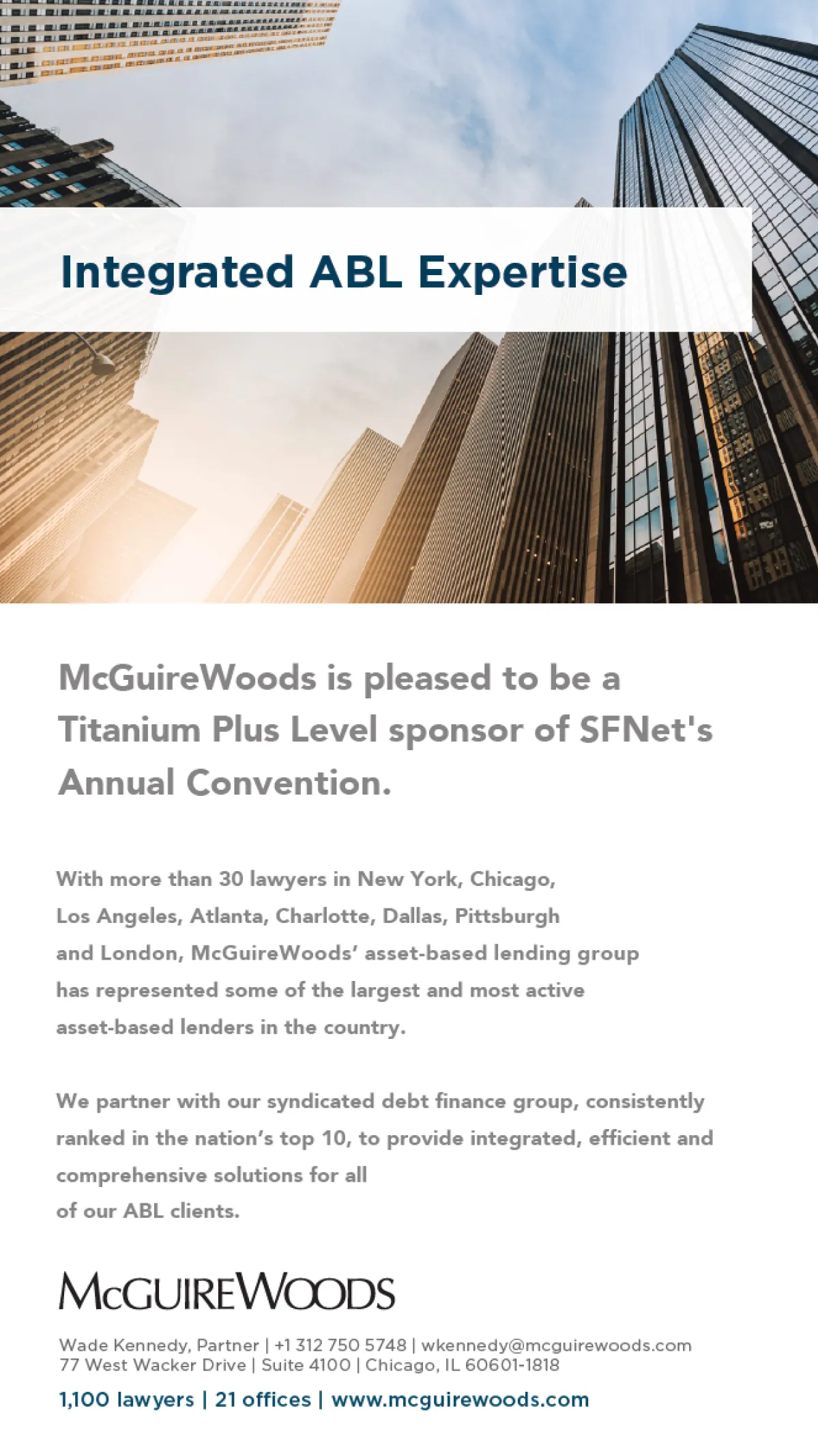 The McGuireWoods Asset Based Lending Group (“ABL Group”) is comprised of 34 specialized partners and associates constituting one of the nation's largest integrated practice groups dedicated to the unique needs of asset based lenders. The ABL Group represents national and regional financial institutions in the arrangement, negotiation and documentation of syndicated and single lender asset-based credit facilities. Through our offices in Atlanta, Charlotte, Chicago, Dallas, Los Angeles, New York, Pittsburgh and London, the ABL Group has closed transactions across the United States and Europe in a wide range of industries including automotive and industrial manufacturing, beverage distribution, restaurants, consumer retail, lender finance, transportation, healthcare, technology and more.