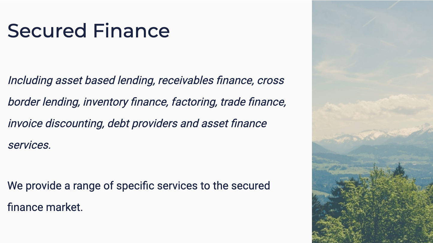 We provide specialist risk management services across a wide range of situations in many countries and seek to deliver the highest quality of service in support of our clients. We have extensive collateral management knowledge and expertise, with a focus on Accounts Receivables, Inventory and other Asset Classes.