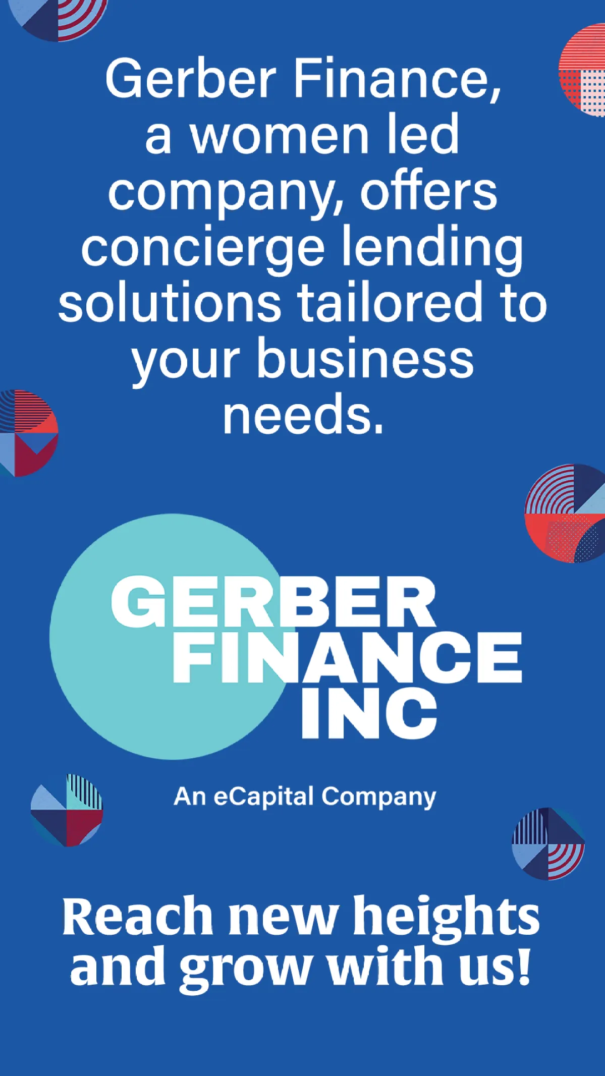 Gerber Finance is the leading financing partner for companies experiencing accelerated growth. Our asset based lending (ABL) structure allows companies to retain equity while driving sustainable profit. Our people first team provides expedited turnaround, and direct, real time access to our experienced management team, including key decision makers. The result is significant and consistent growth. To learn more, please visit us at www.gerberfinance.com.